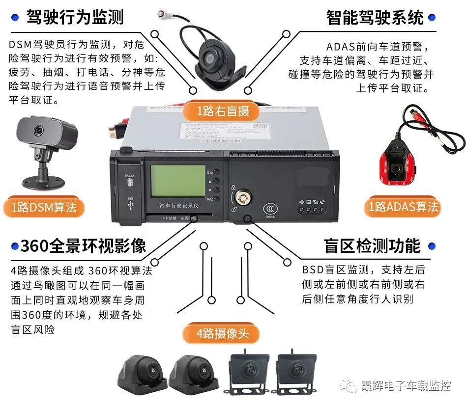 本地360環視與智能視頻主動安全一體化,實現DSM、ADAS、BSD、環視算法集成到一臺設備,全方位滿足駕駛員行使輔助以及駕駛員不良行為駕駛習慣的監控。