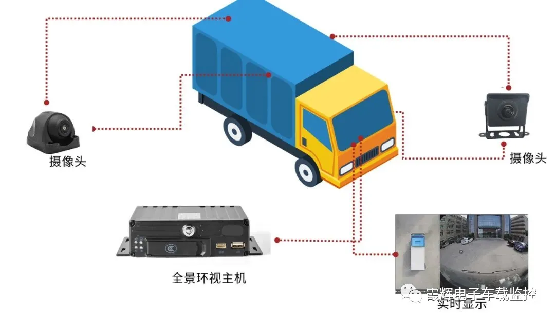 本地360全景影像監控系統通過在車輛四周安裝超廣角攝像機,將視頻采集至終端主機,并由算法合成全景鳥瞰圖。